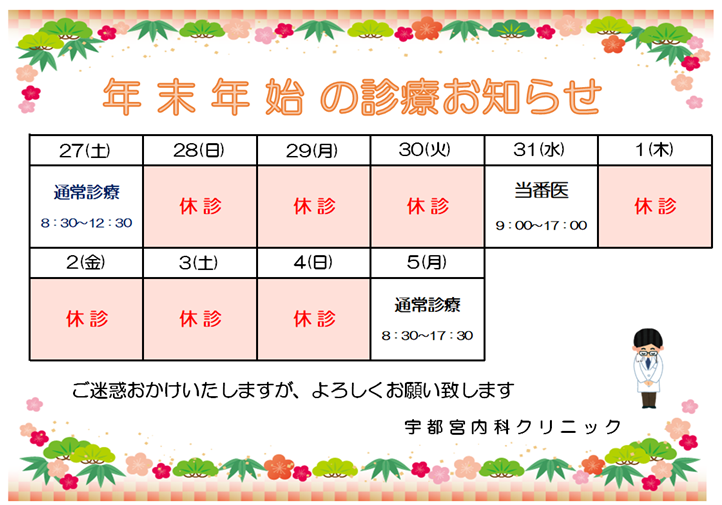 1月5日(月)以降は通常診療(8:30~17:30)となります
